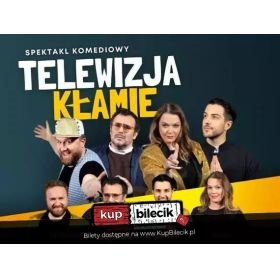 bilety: "Telewizja kłamie" to wybuchowa mieszanka teatru i kabaretu. Cała prawda o kłamstwach telewizji w doborowej obsadzie. Telewizja Kłamie artyści: Tamara Arciuch, Adam Fidusiewicz, Bartek Kasprzykowski, Bartosz OpaniaCała prawda o kłamstwach telewizji w doborowej obsadzie. Tamara Arciuch jako Małgosia Różenek, Bartek Opania jako Krzysztof Zniemiec, Adam Fidusiewicz jako Marcin Prochop, Bartek Kasprzykowski jako Krzysztof Wybisz i publiczność jako telewidz, który może wybrać jaką telewizję chce oglądać w spektaklu. A do wyboru jest TVP, TVN, Polsat i TV Trwam. Autor spektaklu, Michał Paszczyk z kabaretu Paranienormalni, gwarantuje, że popłaczecie się... ze śmiechu! Bilety do nabycia na: KupBilecik.pl |